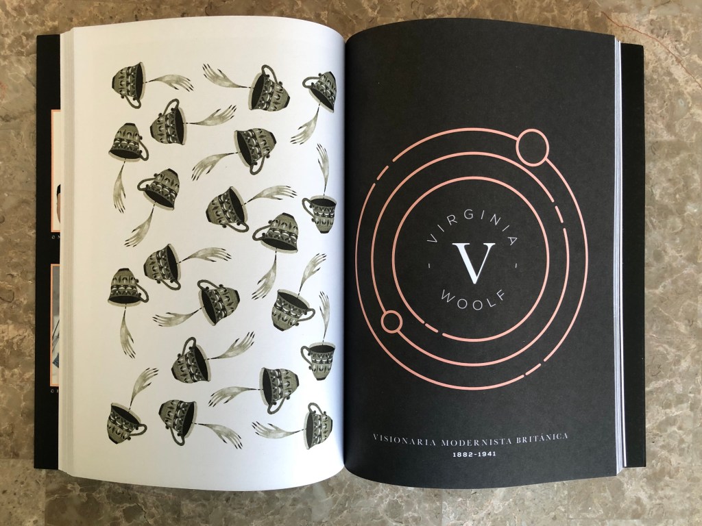 Lo que más me gustó de este libro fueron las ilustraciones. Y no sólo los retratos de cada escritora, que son una obra de arte. Cada página tiene pequeños dibujos y viñetas que, junto con los ingeniosos textos que los acompañan, nos ayudan a construir una imagen de cada «bruja literaria», de quién era, de su obra y de los eventos que marcaron su vida. En el apartado de cada bruja, hay una pequeña historia que mezcla hechos biográficos con algo de surrealismo, y podemos encontrar algunas lecturas recomendadas para conocer el trabajo de cada una. No es necesario leer el libro en orden, simplemente escoge a la bruja literaria que más te llame la atención y brinca hasta la página respectiva. A pesar de que me gustó el libro, me hubiera encantado que incluyera más información sobre estas mujeres. Me quedé con ganas de leer un poco más sobre varias de ellas… aunque quizá es ese precismente el propósito del libro.